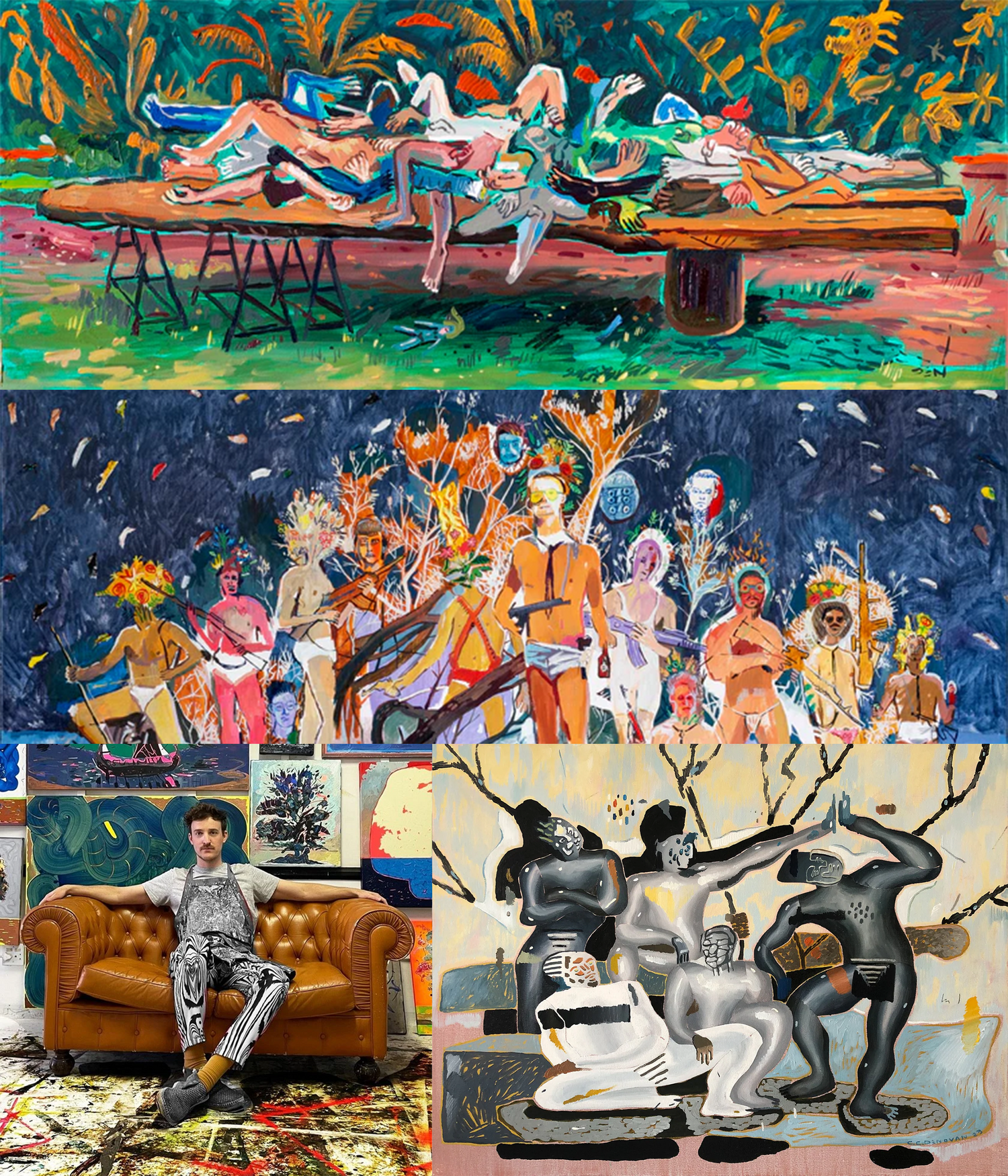 The paint acts as gestural residue for the artist’s subjective expression, and is captured by the canvas, these works of art are painted alongside gravity, force, distance. His work aims to blur the boundaries between two- and three-dimensional expression by layering materials, medium to compose a complete timeless captivating experience.